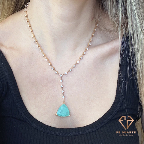 Colar Gravata Gota Fusion com Pontos de Zircônias Cristais nos Banhos: Ouro e Ródio Branco. Tamanho: 40 cm.