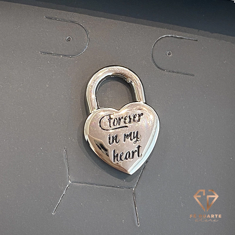 Pingente Heart Forever (com escrito Forever In My Heart) nos Banhos: Ouro e Ródio Branco. Tamanho 2,5 cm.