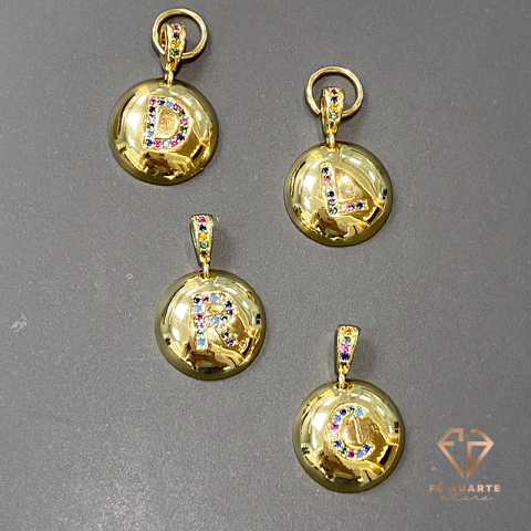 Pingente Letra Colors Cravejado de Zircônias Coloridas no Banho de Ouro.